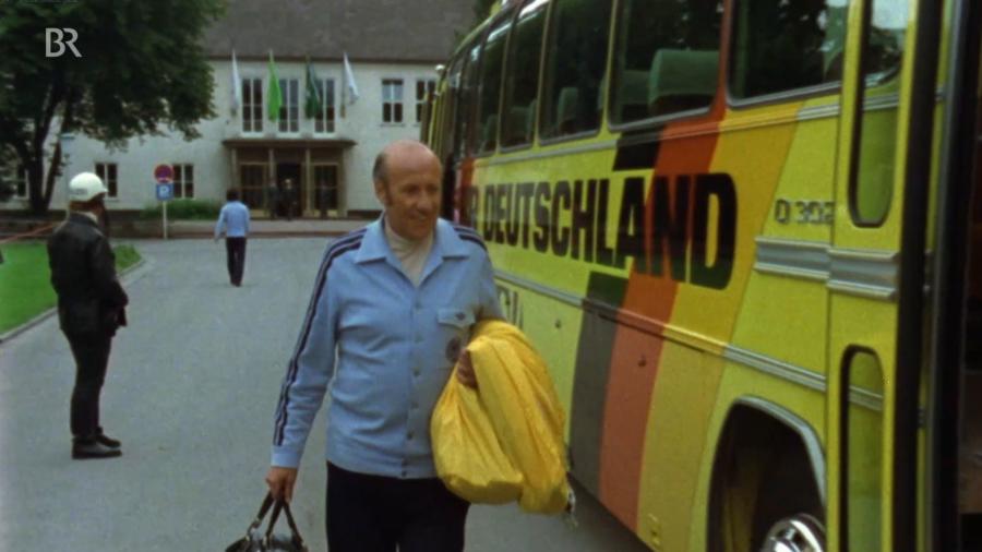 Die erste Weltmeisterschaft auf deutschem Boden bescherte der Nationalmannschaft den zweiten Titel. Fast auf den Tag genau 20 Jahre nach dem WM-Erfolg von Bern war die Sportschule Grünwald erneut WM-Quartier. Vom 4. bis 8. Juli 1974 war die Mannschaft von Helmut Schön in der Sportschule untergebracht. Von dort ging es am 7. Juli 1974 im Mannschaftsbus zum Endspiel ins Münchner Olympiastadion. (Bild: BR)
