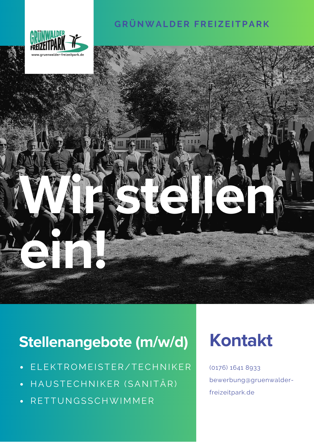 Als kommunaler Betrieb bietet der Freizeitpark einen verlässlichen, sicheren Arbeitsplatz – gleichzeitig gibt es Raum für eigene Ideen, Verantwortung und aktives Mitgestalten von Angeboten, Veranstaltungen und Entwicklungen.